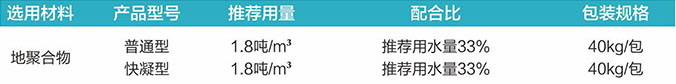 备注:根据通行时间选择普通或者,快凝型地聚合物注浆材料