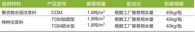 应用于隧道等下地岩体的注浆防水,抢修加固; 公路、桥梁、机场跑道、隧道等地基下陷的补强加固。