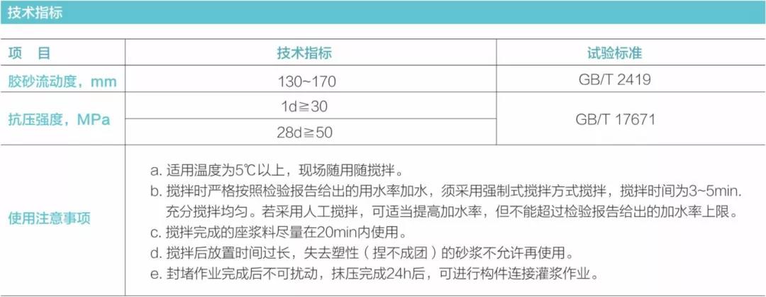CGM座浆料也称高强封堵料,是用于装配式混凝土结构连接节点封堵密封的水泥基材料,具有强度高、干缩小、和易性好可塑性好,封堵后无坍落)、粘接性能好、方便使用的特点。