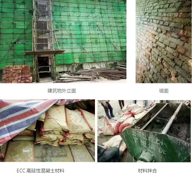 (1)高延性混凝土用于砌体结构加固 ; 改善砌体的脆性,增加砌体结构的整体性,提高砌体结构的抗震性能 。